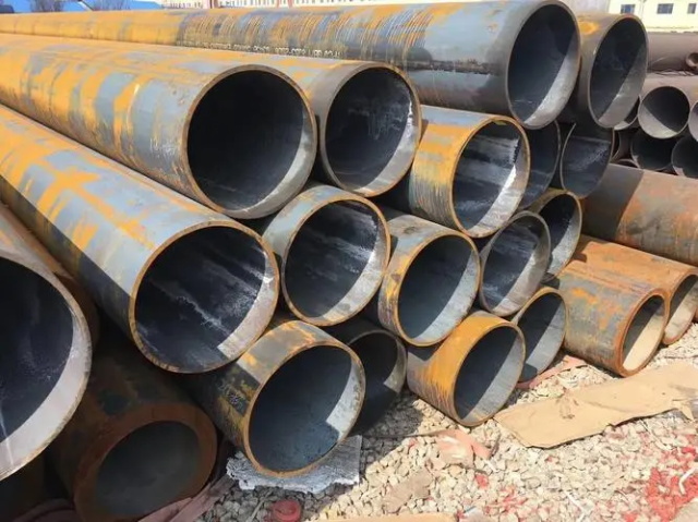 2.冷拔(轧)许昌大口径厚壁无缝钢管:圆管料→加热→破孔→打头→退火→酸洗→抹油(镀铜)→多道次冷拔(冷扎)→坯管→热处理→矫直→水压试验(探伤)→标识→进库。冷拔(轧)无缝钢管的冷轧方式较热扎它们生产流程前三步基本一致。不同之处从第四个流程逐渐,圆管料经打空后,要开头,退火。退火后进行酸洗。酸洗后,抹油。随后紧接着是经过多道次冷拔(冷扎),专门的热处理。热处理后,就要被校直。钢管经校直后进行内部探伤。钢管质检后还要通过严格手工选择。钢管质检后,用漆料喷上编号、规格、生产日期等。并由吊车吊入仓库里。